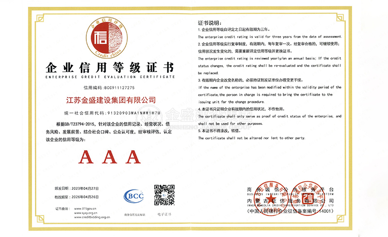 • 3A級(jí)資信等級(jí)證書